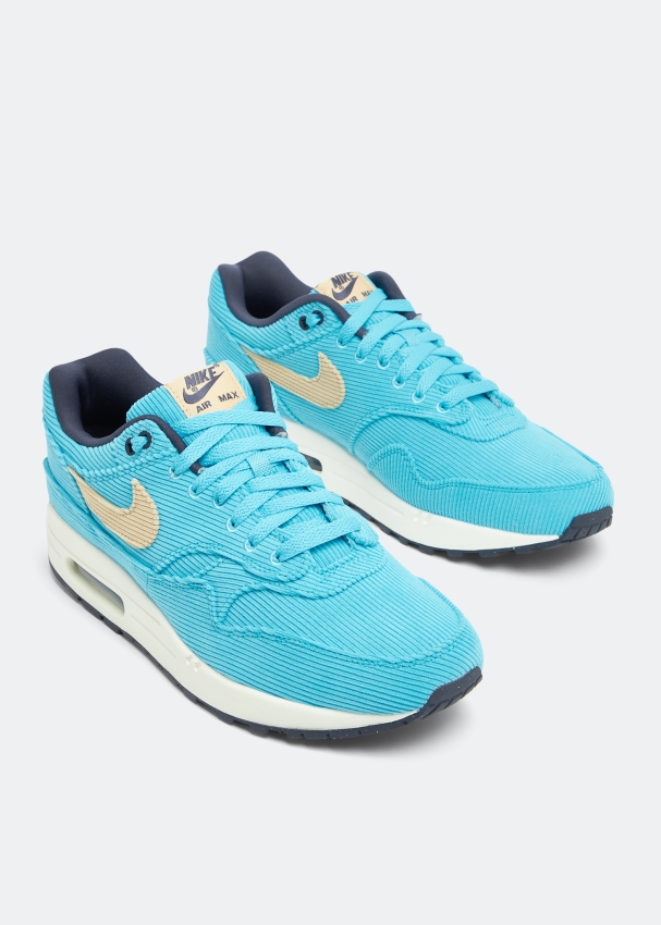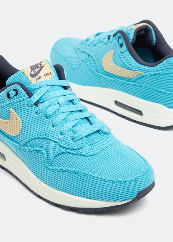 أبدعت علامة نايك في إعادة ابتكار حذاء السنيكرز الكلاسيكي لتقدمه إليك بتصميم جديد مضلع. يتميز سنيكرز إير ماكس 1 بالتيك بلو بشعار السووش الشهير وملصق لسان باللون البيج مع رباط بلون متناغم، توسيد أفضل مع نعل خارجي مطاطي وطبقة واقية بنمط مموج.