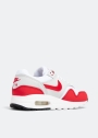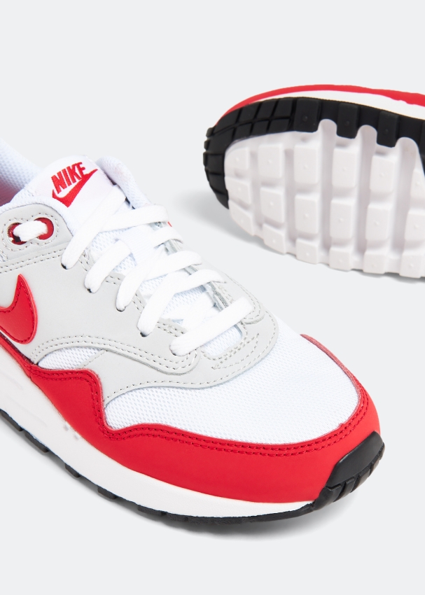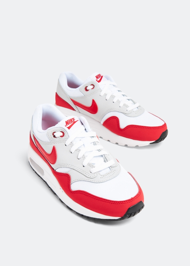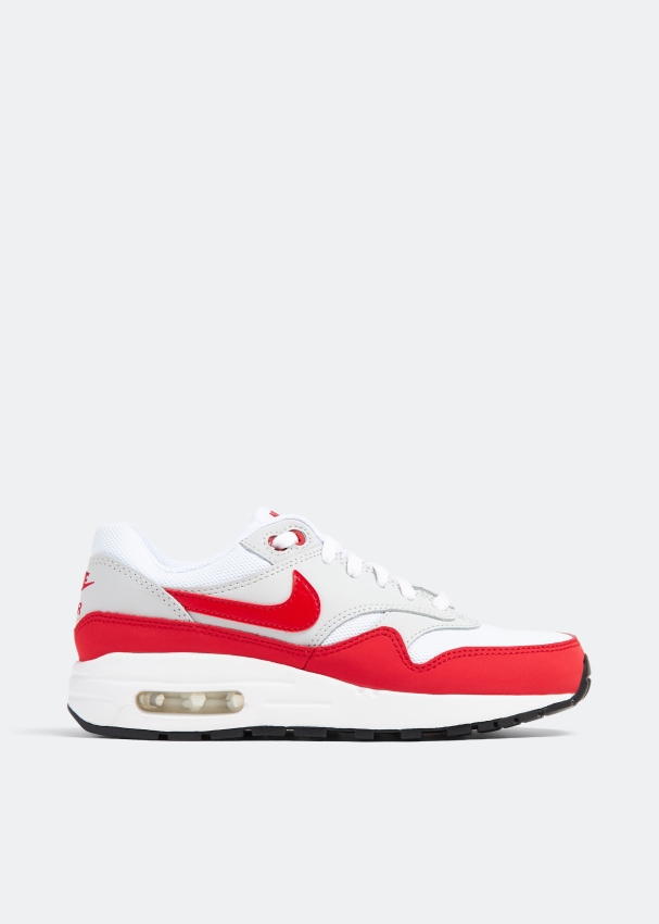 يأتي سنيكرز إير ماكس 1 من نايك بجزء علوي من النسيج الشبكي والجلد مع تفاصيل من الجلد اللامع ويكتمل بشعار العلامة الشهير وأربطة للإغلاق مع وسادة قدم ونعل خارجي من المطاط.