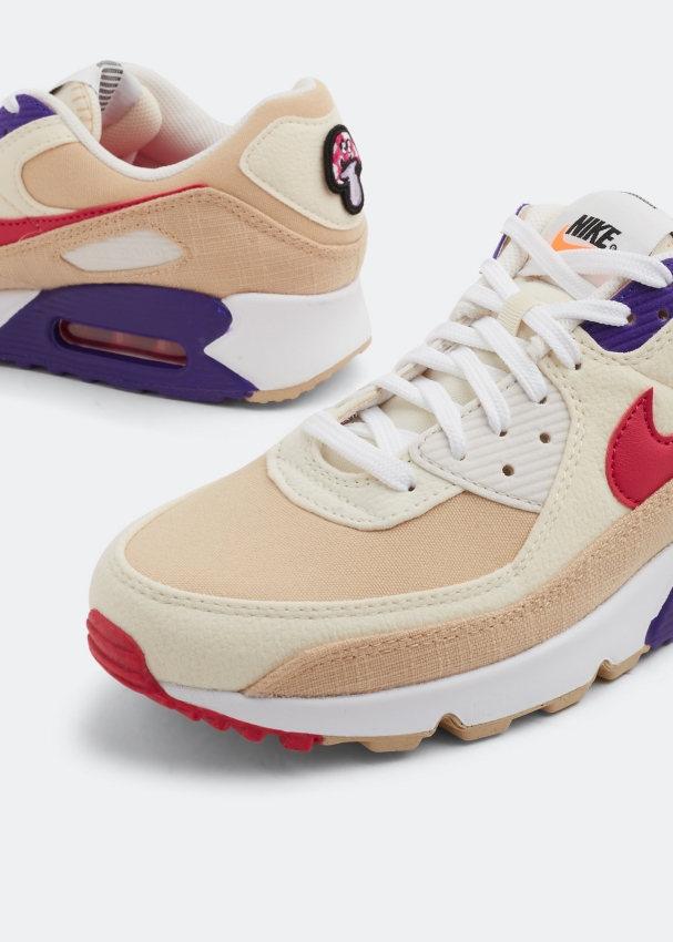 تُقدم لك نايك سنيكرز اير ماكس 90 من بين مجموعة اير سبرانغ بألوان مميزة من الوردي والأبيض والبيج وخامة من الجلد وقماش الكانفاس. يأتي الحذاء مزين بفراشة على النعل الأيسر الداخلي ووسادة قدم قابلة للإزالة على الكعب.