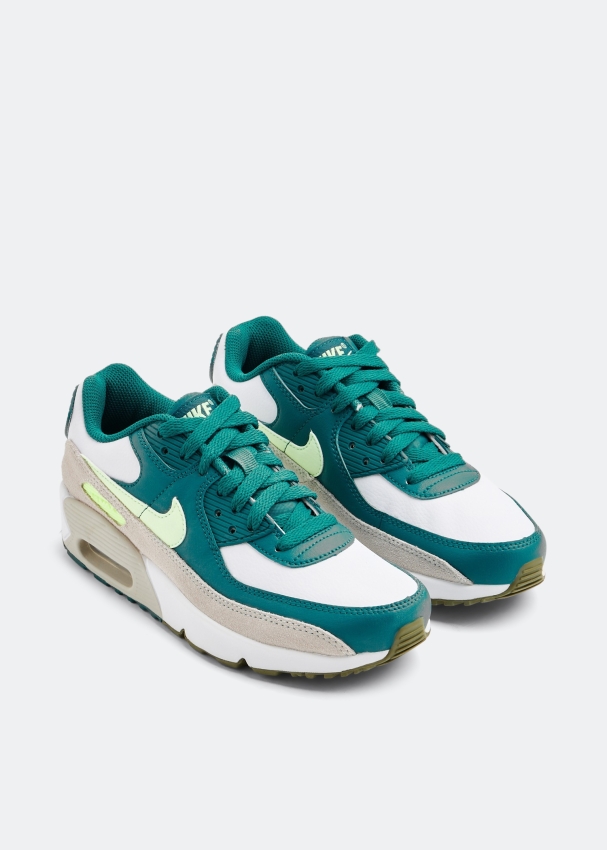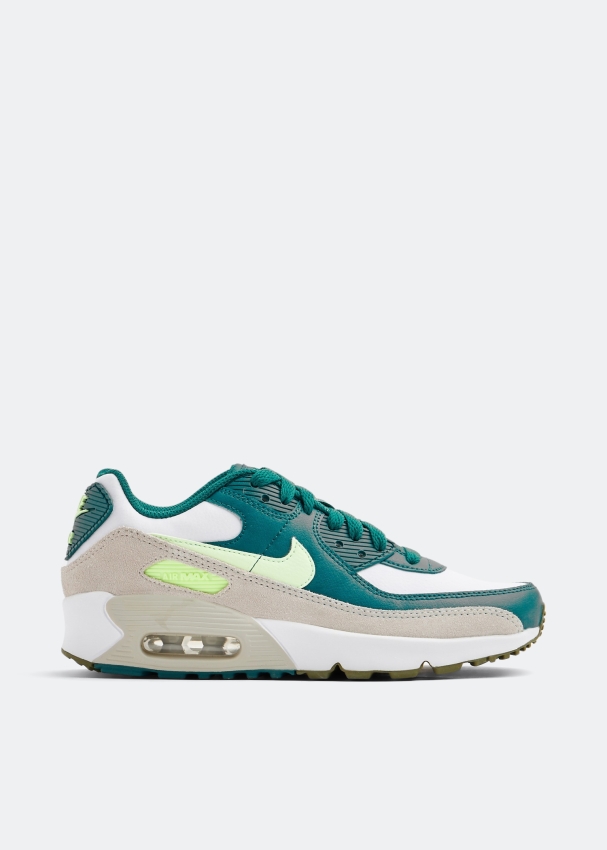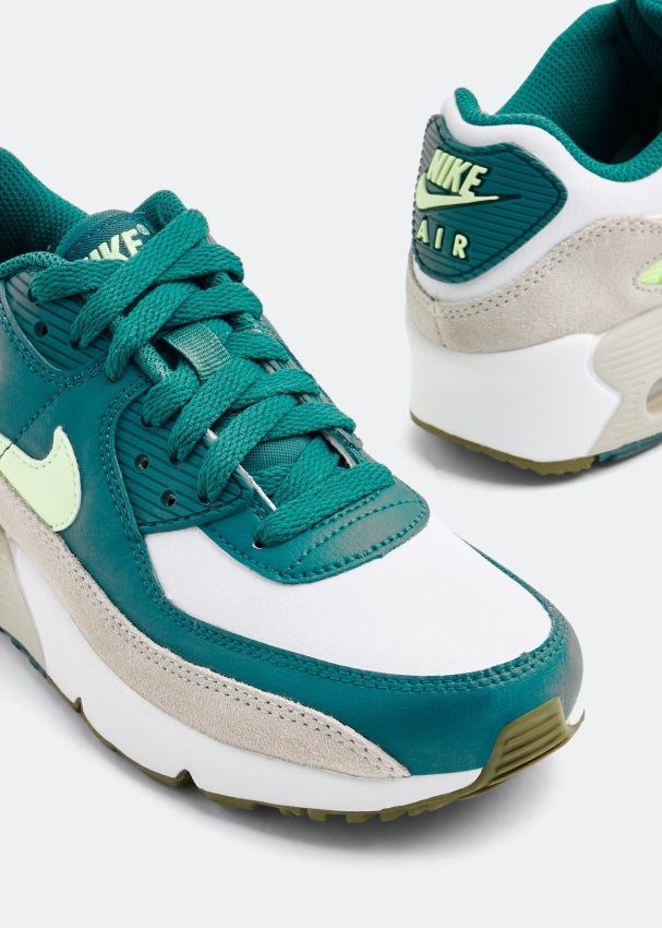 أضيفوا لمسة مميزة إلى خطوات صغيركم مع سنيكرز إير ماكس 90 إل تي آر. يأتي بتصميم باللون الأخضر والأبيض والبيج مع وحدة "إير ماكس" على الكعب ورقبة مبطنة.