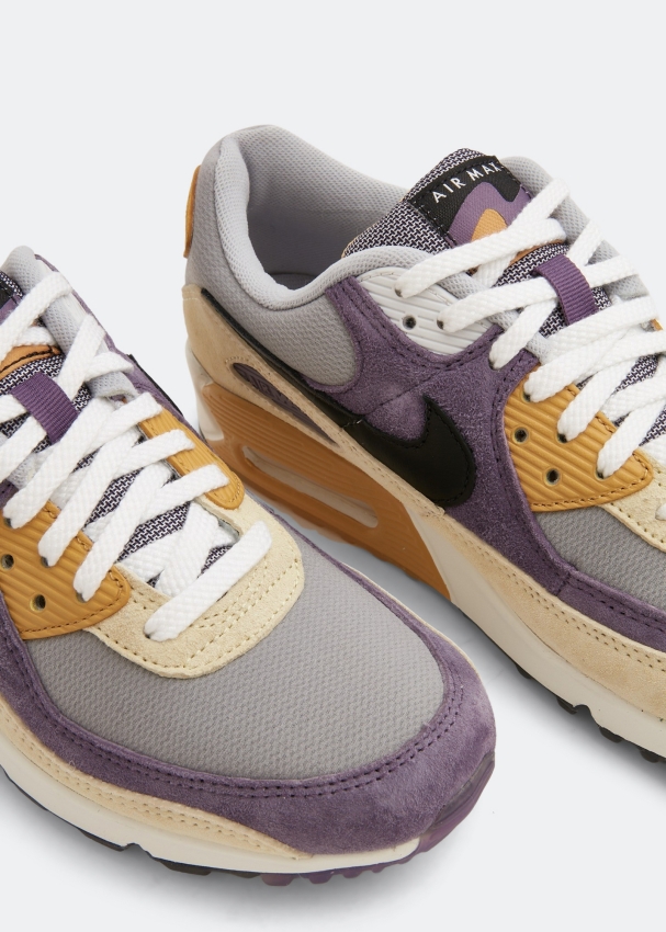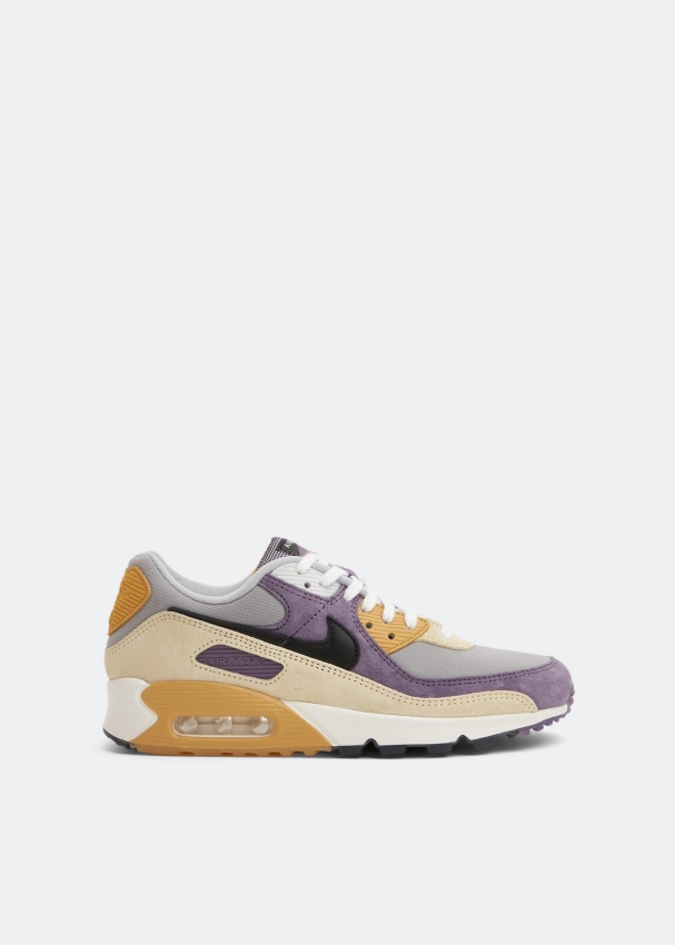 يأتي سنيكرز إير ماكس 90 الشهير من نايك بكتل لونية من "الليمون دروب" و"البيربل كورت". مصنوع من النسيج الشبكي مع طبقات من الشمواه ويمتاز بشعار نايك من الجلد على الجوانب ولسان شبكي بشعار العلامة بتصميم ريترو. يكتمل هذا التصميم متعدد الألوان بأربطة بيضاء ونعل أوسط سميك ونعل خارجي شبه شفاف.
