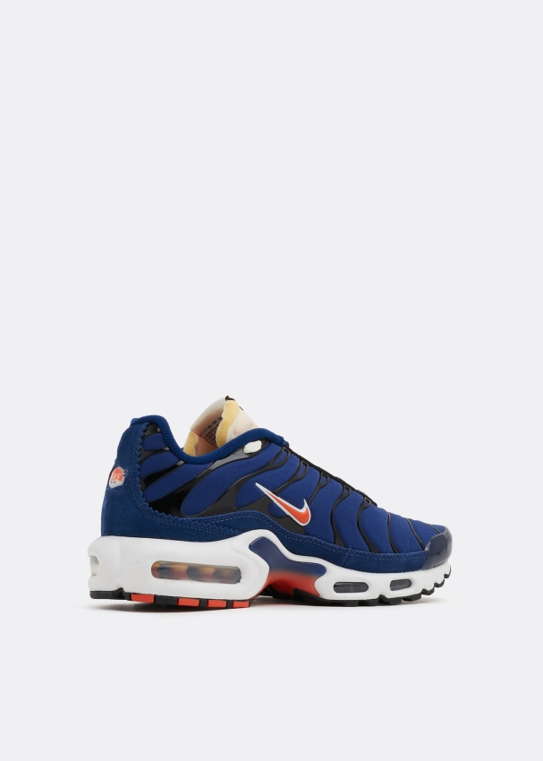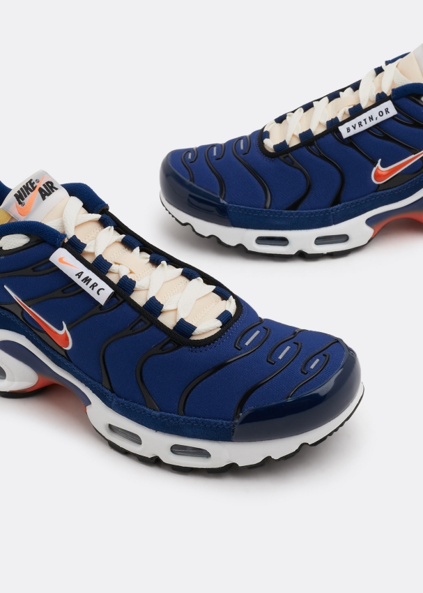اختر لمسة أنيقة بنمط ريترو من نايك مع سنيكرز إير ماكس بلس إس إي إيه إم آر سيبلون أزرق داكن على قاعدة من اللون الأسود مع تفاصيل برتقالية اللون معاكسة مع شعار إيه إم آر سي على النعل الأوسط.
